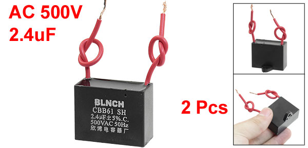 Product Name Motor Capacitor Model CBB61 External Material Plastic Dielectric Material Metalized Polypropylene Film Rated Capacitance 2.4uF Tolerance +/-5% Rated Frequency 50Hz Rated Voltage AC 500V Body Size 3.7 x 1.7 x 2.8cm/ 1.5" x 0.7" x 1.1"(L*W*T) Mount Hole Diameter 4mm/0.16" Cable Length 7cm/ 2.8" Net Weight 49g Package Content 2 x Motor Run Capacitor - Reviews