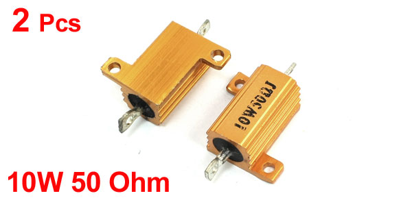 Product Name Aluminum Resistor Resistance Value 50 Ohm Power Rating 10W Mounting Hole Dia 2.5mm/0.1" Mount Hole to Hole Distance 22mm/0.87" Connect Hole Dia 2mm/0.08" Connect Hole to Hole Distance 27mm/1.1" Plate Size 31 x 21mm/1.1" x 0.83"(L*W) Body Size 18 x 11 x 10mm/ 0.71" x 0.43" x 0.4"(L*W*T) External Material Aluminum Color Yellow Net Weight 11g Package Content 2 Pcs x Aluminum Resistor - Reviews