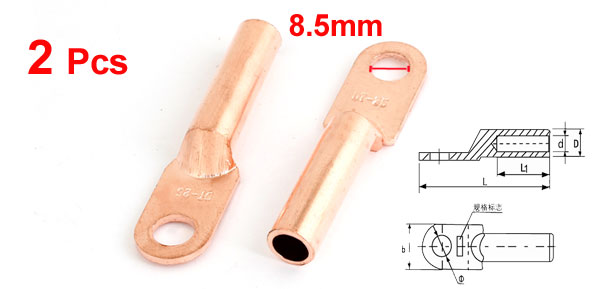 2 Pcs Connect Tube Cable Copper Connecting 0.33" Diameter Lug Terminals