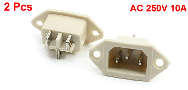 2 Pcs Cooker Part IEC320 C14 Inlet 3 Terminal Beige Power Socket AC 250V 10A