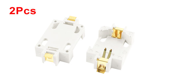 2 Pcs CR2032 Cell Button Battery Socket Holder Case SMD SMT Gold Plated White