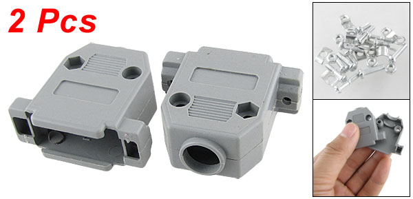 2 Pcs DB 15 Pin Plug Socket Gray Plastic Hoods Shell w Screw