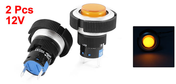 2 Pcs DC 12V 22mm Thread Panel Mounting Orange Signal Indicator Light Bulb