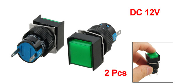 2 Pcs DC 12V Green Square Cap Indicator Light Accident Signal Lamp
