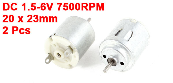 Product Name DC Motor Rated Voltage DC 1.5-6V Speed 7500RPM Shaft Size 2 x 7mm/ 0.08" x 0.27"(D*L) Body Diameter 20 x 23mm/ 0.8" x 0.9"(D*L) Main Color Silver Tone Material Metal Weight 36g Package 2 x DC Motors - Reviews