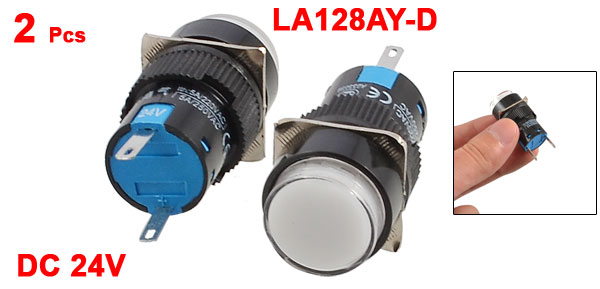 Product Name Indicator Light Model No. LA128AY-D Working Voltage DC 24V Light Color White Shell Color Black, White, Blue Terminals Quantity 2 Pins Mounting Hole Diameter 16mm / 0.63" Overall Size (Approx) 18 x 40mm/ 0.71" x 1.6" (D*H) Weight 14g Package Content 2 Pcs x Indicator Light - Reviews