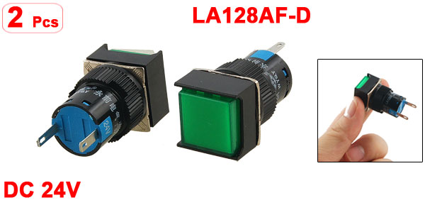 2 Pcs DC 24V 16mm Panel Square Green Power Signal Lamp Indicator Light Pilot
