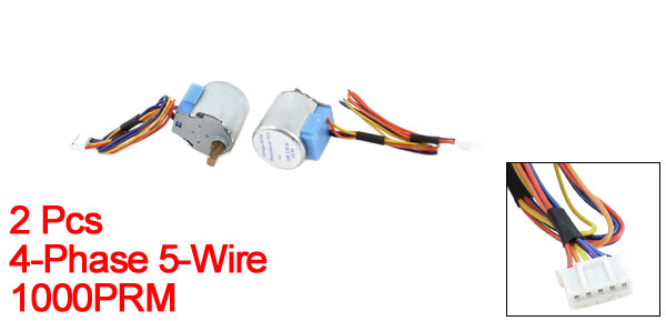 Product Name Stepper Motor Type 4-Phase 5-Wire Voltage DC 6V Resistant 1 Ohm Speed 1000PRM Shaft Size 4.95 x 10mm/0.2" x 0.4"(D*L) Motor Size 20 x 20 mm/0.8" x 0.8"(D*L) Cable Length 12cm / 4.7" Material Metal, Plastic, Electronic Parts Color Silver Tone, White Weight 55g Package Content 2 x Stepper Motor - Reviews