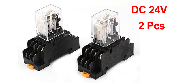 2 Pcs DC24V Coil 4PDT 14 Pins 4NO 4NC DIN Rail Electomagnetic Relay w Socket