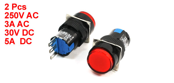 Item Name Push Button Switch w Lamp Model AB6-M Type 3 Pin, SPDT, Momentary Input Voltage 250V AC Input Current 3A AC Output Voltage 30V DC Output Current 5A DC Button Color Red Size 18 x 32mm/ 0.7" x 1.26" (D*L) Button Diameter 16mm/ 0.63" Material Plastic and Metal Weight 12g Package Content 2 x Push Button Switch - Reviews