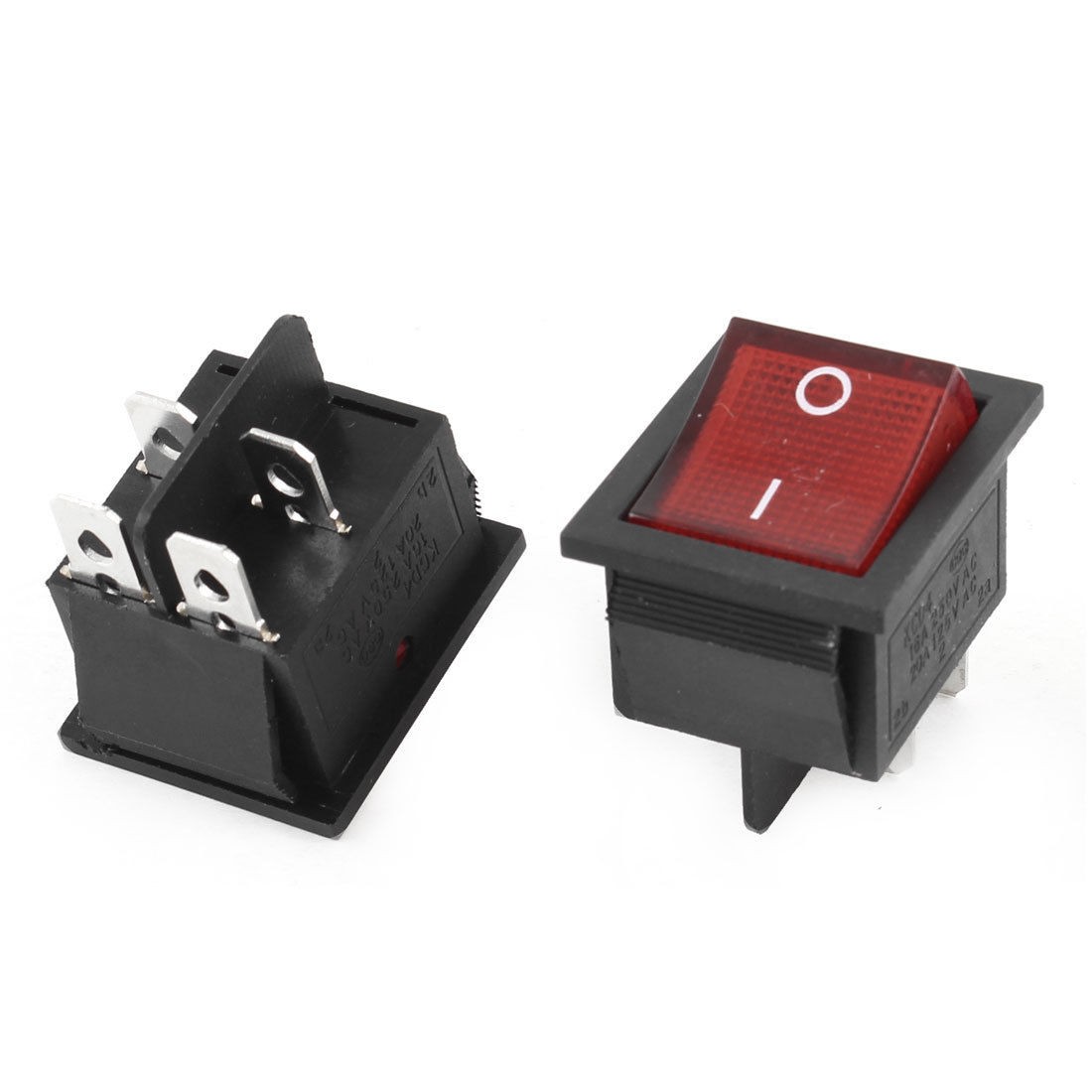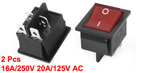 2 Pcs DPST ON-OFF 4 Pin Red Light Rocker Boat Switch 16A/250V 20A/125V AC