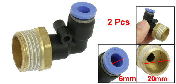 2 Pcs Elbow One Touch Fittings 6mm to 1/2" PT Thread Quick Connector