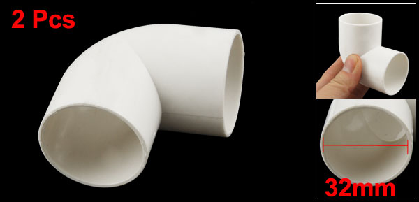 2 Pcs Elbow White PVC 32mm Inner Dia Wire Pipe Connector