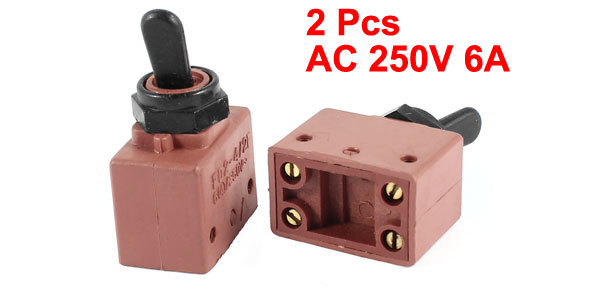 Product Name Toggle Switch Model No. FD2-4/2F Contact Type DPST Number of Position 2(ON/OFF) Voltage/Current AC 250V 6(4)A Size 30 X 18 X 47mm/ 1.2" x 0.7" x 1.9" (L*W*H) Material Plastic, Matel Color Black, Red Net Weight 34g Package 2 x Toggle Switch - Reviews