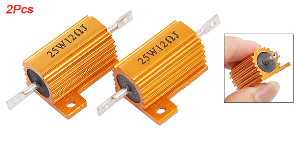 Product Name Aluminum Housed Wirewound Resistor Resistance Value 12 Ohm Power Rating 25W Resistance Tolerance ± 5% (J) Body Size 2.7 x 1.5cm / 1.1" x 0.6" (L*D) Total Size 5.3 x 2.8 x 1.5cm / 2.1" x 1.1" x 0.6" (L*W*H) Casing Material Aluminum Color Gold Tone Weight 28g Package Content 2 x Aluminum Housed Wirewound Resistors - Reviews