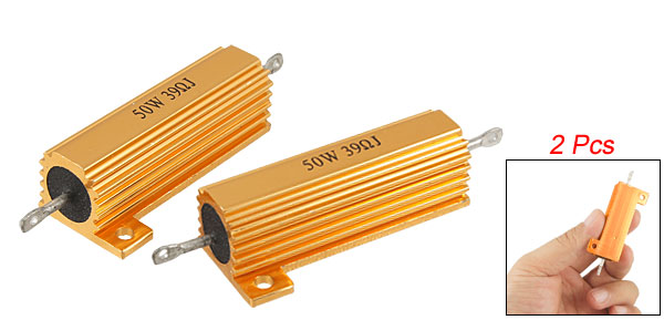 2 Pcs Gold Tone Aluminum Housed Resistors 50W 5% 39 Ohm