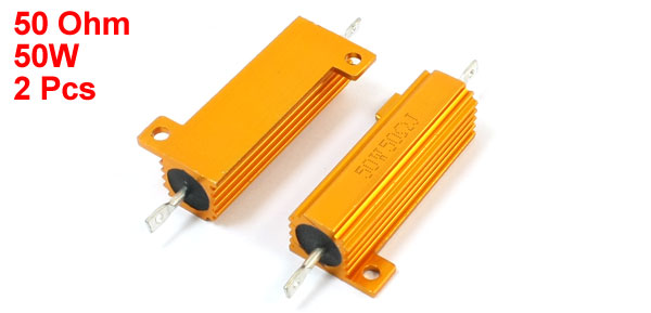 2 Pcs Gold Tone Axial Lead Aluminum Housed Resistor 50W 50 Ohm 5%