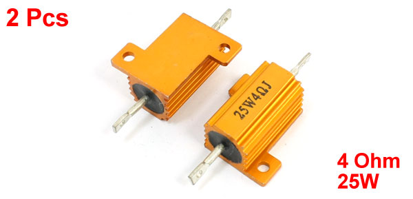 2 Pcs Gold Tone Heatsink Aluminum Housed Case Resistor 25W 4 Ohm