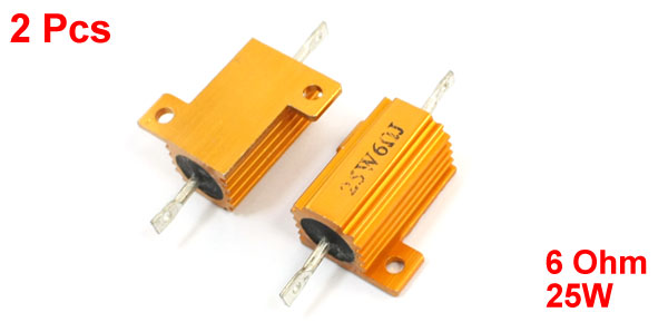 2 Pcs Gold Tone Heatsink Aluminum Housed Case Resistor 25W 6 Ohm
