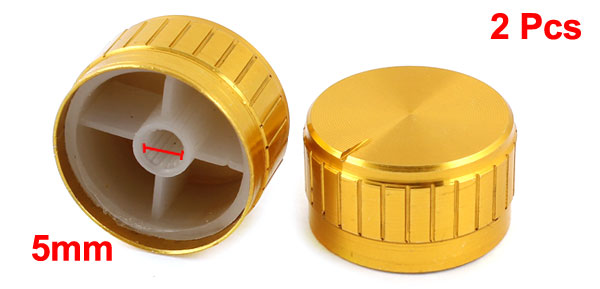 Product Name Potentiometer Knob Material Plastic, Aluminum Color Gold Tone Total Size 30 x 17mm / 1.2" x 0.67" (D*H) Inner Hole Diameter(Fit Shaft Dia) 5mm / 0.2" Net Weight 5g Package Content 2 x Potentiometer Knobs - Reviews