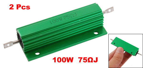 2 Pcs Green 100 Watt 75 Ohm 5% Aluminum Shell Wire Wound Resistors