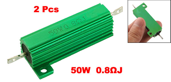 Product Name Aluminum Housed Resistor Resistance Value 0.8 Ω Power Rating 50W Resistance Tolerance ± 5% (J) Body Size 49 x 15mm/ 1.9" x 0.59" (L*D) Mounted Hole Size 1.8mm/ 0.07", 3mm/ 0.12" Total Size 72 x 22 x 15mm/ 2.8" x 0.86" x 0.59" (L*W*T) Casing Material Aluminum Color Green Weight 48g Package Content 2 x Aluminum Housed Resistor - Reviews
