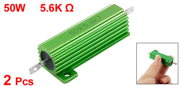 2 Pcs Green Aluminum Casing 50 Watt 5.6K Ohm Wire Wound Resistors