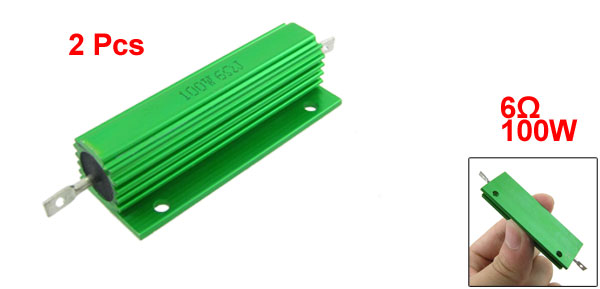 2 Pcs Green Aluminum Housed Wirewound Resistors 100 Watt 6 Ohm 5%