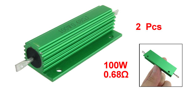 2 Pcs Green Aluminum Housed Wirewound Resistors 100W 0.68 Ohm 5%