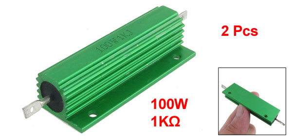 2 Pcs Green Aluminum Housed Wirewound Resistors 100W 1K Ohm 5%