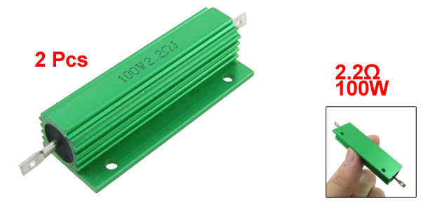 2 Pcs Green Aluminum Housed Wirewound Resistors 100W 2.2 Ohm 5%