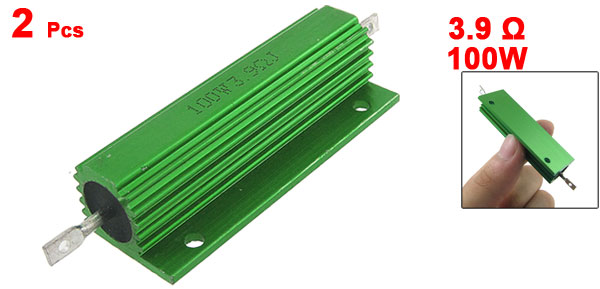 2 Pcs Green Aluminum Housed Wirewound Resistors 100W 3.9 Ohm 5%
