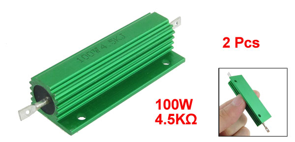 2 Pcs Green Aluminum Housed Wirewound Resistors 100W 4.5K Ohm 5%