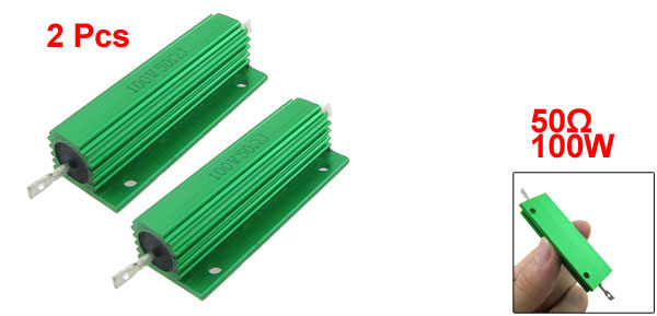 2 Pcs Green Aluminum Housed Wirewound Resistors 100W 50 Ohm 5%