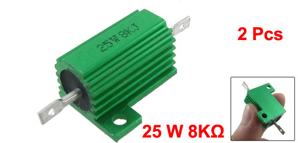 2 Pcs Green Aluminum Housed Wirewound Resistors 25W 8K Ohm 5%