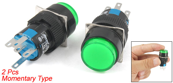2 Pcs Green Round Cap Lamp Momentary Push Button Switch Cliaf