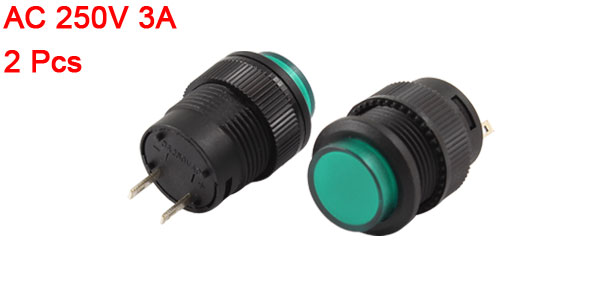 2 Pcs Green SPST Self Locking Push Button Switch R16-503 AC 250V 3A
