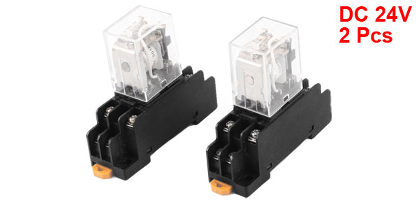 2 Pcs HH52P MY2 DC24V Coil 2NO+2NC 2PDT 8 Pin Electromagnetic Relay w Socket