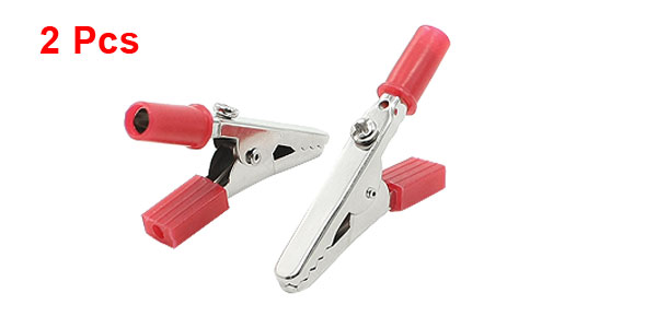 2 Pcs Insulating Alligator Clips Test Lead Crocodile Clamps Red 2.2"