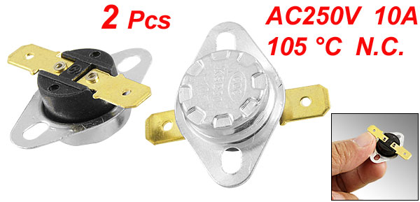 2 Pcs KSD301 105C N.C Temperature Control Switch Thermostat Gold Tone Terminals