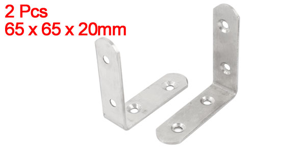 Product Name Angle Bracket Material Stainless Steel Color Silver Tone Hole Quantity 4 Holes Bracket Size 65 x 65 x 20mm/2.6" x 2.6" x 0.8"(L*W*T) Hole Dia. 5mm / 0.2" Net Weight 79g Package Content 2 x Angle Brackets - Reviews