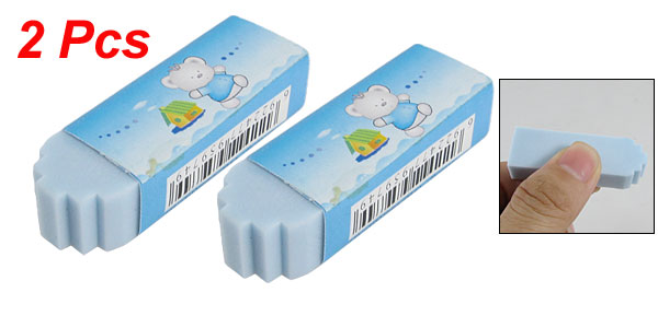 2 Pcs Light Blue Symmetrical Stair End Design Rubber Eraser