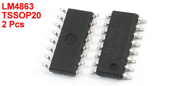 Product Name Audio Amplifier IC Model LM4863 Mounting Type PCB SMD SMT Packaging TSSOP20 Each Size(Approx) 10 x 4 x 1.5mm /0.4" x 0.16" x 0.06" (L*W*T) Max. Width 6mm/0.24" Color Black Net Weight 1g Package Content 2Pcs x Audio Amplifier IC - Reviews