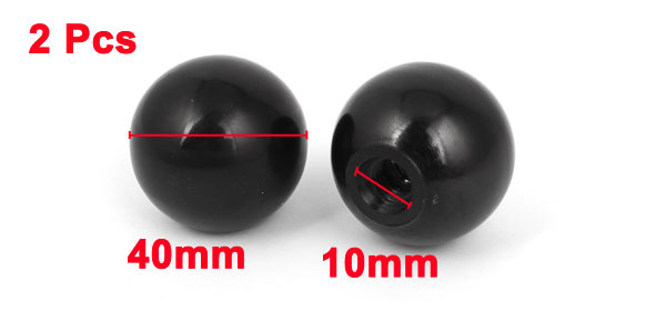 2 Pcs M10 x 28mm Thread Round Plastic 40mm Diameter Ball Shift Knob Black