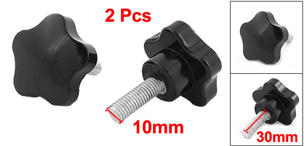 2 Pcs M10 x 30 Thread 50mm Dia Bakelite Knobs Handle Black for Machine Tool