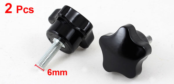2 Pcs M6 x 20mm Male Thread 30mm Dia Star Shaped Head Clamping Screw Knob