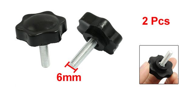 2 Pcs M6 x 20mm Male Thread 32mm Star Head Clamping Knob Black