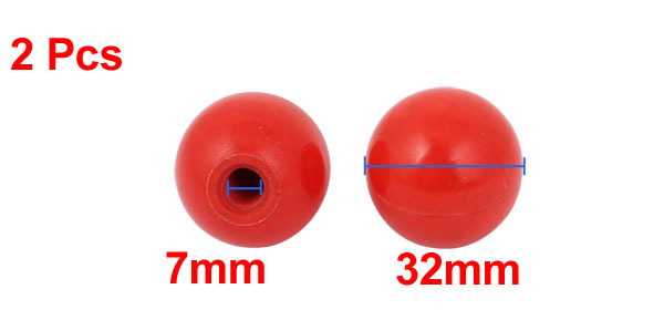 2 Pcs M7 x 17mm Thread Round Plastic 32mm Diameter Ball Shift Knob Red