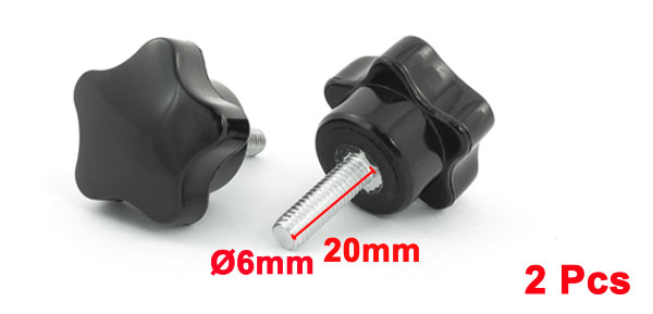 2 Pcs Machine Tool M6 x 20 Male Thread 32mm Dia Bakelite Knobs Handle Black
