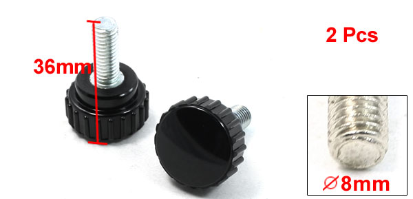 Product Name Clamping Knob Type Screw On Head Diameter 26mm / 1" Thread Length 20mm / 0.8" Thread Diameter 8mm / 0.3" Total Height 36mm / 1.4" Material Metal, Plastic Color Silver Tone, Black Weight 38g Package Content 2 x Clamping Knob - Reviews